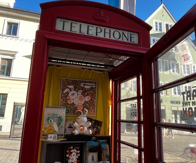 Mit freundlicher Unterstützung der Stadt Mindelheim ist die Telefonzelle jetzt zur Galerie geworden und steht ganz zentral in Mindelheim vor dem Rathaus.