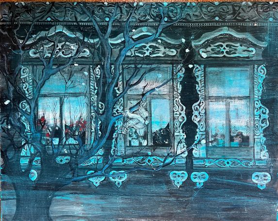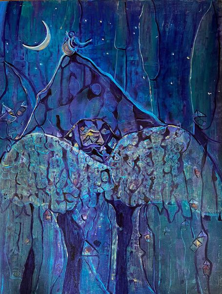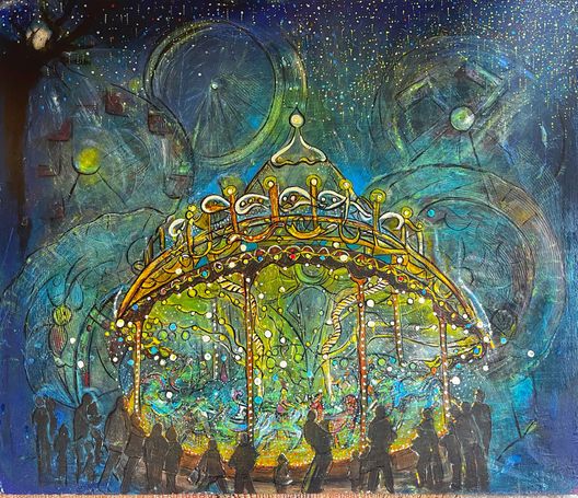 Dacic malt in einem Stil, der zwischen Vision und Traum changiert. Ihre Motive sind voller Symbolik: ein Hamsterrad als Rad des Lebens, Clowns, die durch Vorhänge ins Licht treten, Karussells, Engel, Lebensbäume. Ihre Werke erzählen Geschichten – mystisch, melancholisch, märchenhaft.